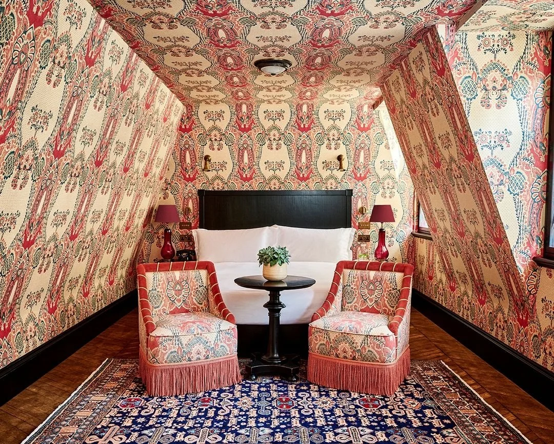 On the northeastern edge of Grosvenor Square, where the tranquility of gardens meets the subtle hum of North Audley Street, Broadwick Soho stands as a vision in white Portland stone, exuding an air of imposing grandeur. The doorman, donned in a camel-colored cape, shares laughter with colleagues, creating a welcoming atmosphere. The marble-floored lobby, redolent of churchy frankincense, greets guests with a row of staff impeccably dressed in Charlie Casely-Hayford suits, offering a warm welcome reminiscent of old friends. Led by the chattiest staff member, we ascend to our room, adorned with suggestive wallpaper that hints at the setting of a decadent Freudian dream. A pervasive friendliness permeates the velveteen quality of the space, evoking the ambiance of a louche Parisian hideaway rather than conforming to the typical classifications of Hoxton or Heritage pigeonholes.